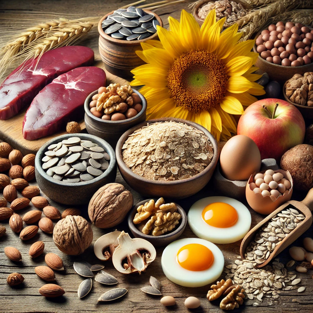 Gli alimenti invece, dove si trova una maggiore quantità di biotina, sono: Fegato e reni, noci e semi di girasole, uova (sode), soprattutto tuorli, soia, farina d'avena e funghi.